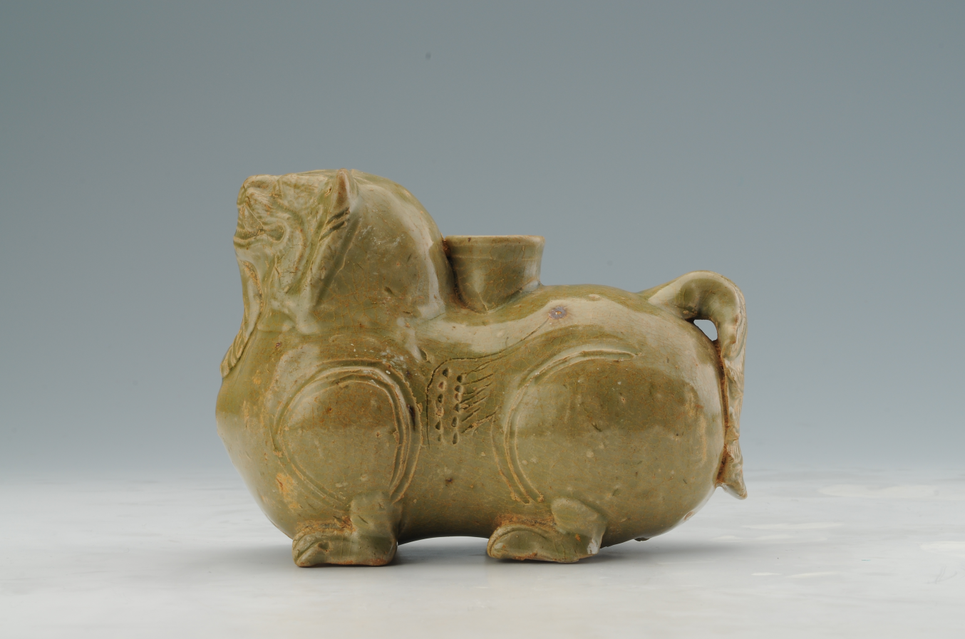 西晋 越窑青釉狮形辟邪瓷烛台