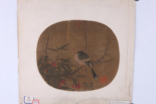 宋 无款竹丛翠鸟图团扇页