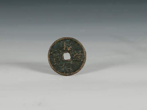 直径2.6厘米,重5克,据《宋史•刘光世传》载,招纳信宝是公元1131年夏季,南宋将领御前巡卫军都统制兼浙西路安抚大使知镇江府刘光世在镇江特铸的军用钱币。当时南宋军队与金兵交战,双方势均力敌,隔江相峙相当长的时间,伤亡颇大。刘光世获悉金兵内部不少战士是强征来的百姓,大部分长期居住在北方,久离故土加上水土不服,思乡情绪较大。于是,他亲自策划一枚酷似南宋初期的特殊货币,楷书环读“招纳信宝”,背面方孔上部铸有“使”字。每当俘获敌兵,刘光世待之以礼,劝其离开金营,解甲归乡,给足缠费,设宴相送,鼓励他们作为大宋的“招纳”特使,携带“招纳信宝”,回去秘密散发给愿意归乡的同伴。凡是执此钱币渡江的金兵,一律享受嘉宾待遇,不受阻挠,安全放行。这个办法果然奏效,离开金营的士兵络绎不绝。一枚小小钱币在不到两个月的时间内,瓦解金兵数万,最终逼迫完颜昌退兵。招纳信宝是在特殊情况下发挥特殊作用的,铸造量十分有限,与当时同期发行的南宋流通货币“建炎通宝”、“绍兴通宝”相比,数量甚微;再加之其流通区域仅处于长江两岸,所以流传至今的真品稀若晨星,十分珍贵。
